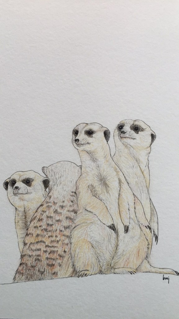 miscellany 0 November 24, 2019September 7, 2022 Written by Bryce M Johnson Spring BlossomsWatercolor 9×12 The 302Watercolor 6×9 ChaiBat Mitzvah gift for friendPen, watercolor, metallic ink6×8 LionKamash & ink10×10 On AlertPen & colored pencil 6×8 Snow LeopardJava pen & ink 9×12 MantisParallel pen & ink 11×14 Constellation: You and IWatercolor & metallic ink 12×18 Whatever doesn’t fit a nice, neat category goes here. Related
